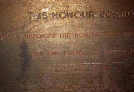 The original board and plaque were destroyed by fire in 1958 and the P&C restored it in 1959.